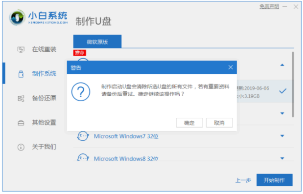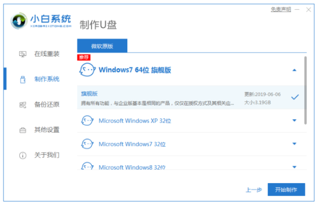 2、我們選擇windows7系統,點擊開始制作。