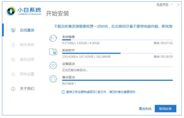 5、然后進入PE系統的界面點擊小白裝機工具繼續安裝,等待安裝完成。