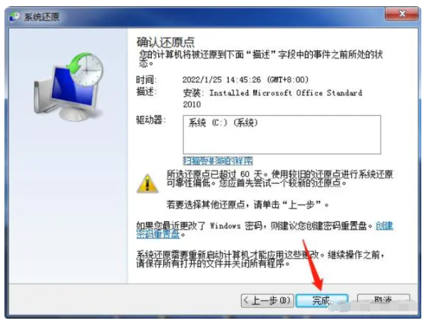 1、點擊之前的還原點進行還原系統。也可以借助第三方工具,比如使用一鍵ghost等軟件安裝后,在系統出問題無法進系統時,可以用一鍵ghost啟動進行安裝系統。前提是需要先用PE系統進入電腦桌面轉移桌面資料。如果桌面文件內容不在系統盤,又沒有其他需要保存的內容,則可以用一鍵ghost直接重裝系統,比如借助上述的小白一鍵重裝系統工具在線一鍵安裝系統。