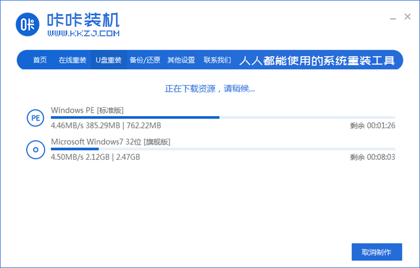 5、等待下載制作啟動u盤的資源。