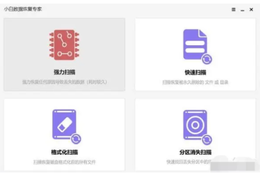 “軟件可以完全恢復丟失的文件、圖片、文檔、視頻、刪除、格式化、 分區丟失、操作系統崩潰、病毒攻擊和其他數據丟失情況。 小白全新推出Windows平臺專用數據恢復工具 多合一專業數據恢復軟件,適用于不同的數據丟失情況 為丟失寶貴的數據而煩惱,您將如何挽救這些文件?毫無疑問,使用小白數據恢復軟件是最明智的選擇。 無論是照片、視頻、文檔還是更多。該軟件可以從各種數據丟失情況中恢復它們。