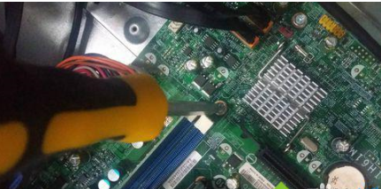 1、用螺絲刀將主板上的螺絲松開一點點,螺絲刀扭動一兩圈就差不多;