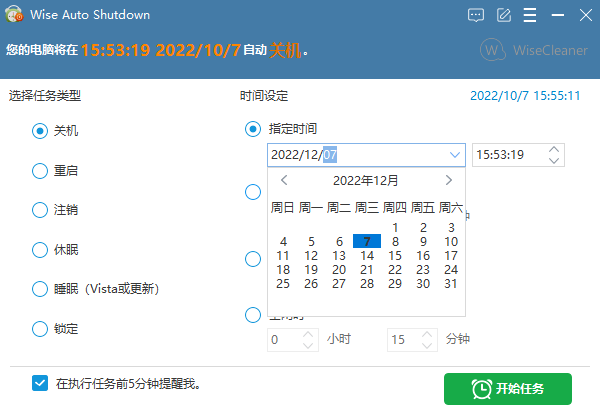 3、設置完成后我們只需要選擇開始任務即可按我們預定的時間進行執行自動關機即可。