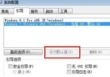 3、在系統配置界面中進入引導選項,設置默認值。隨后重啟電腦,就可以切換系統。