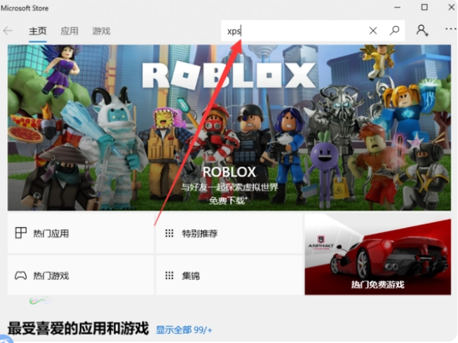 2、點擊打開應用商店之后,我們在最上面的搜索框界面中輸入xps,點擊搜索。