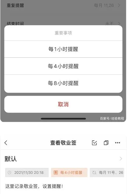 6、手機便簽正確設置重要提醒事項,可選擇每間隔一定周期再次提醒。