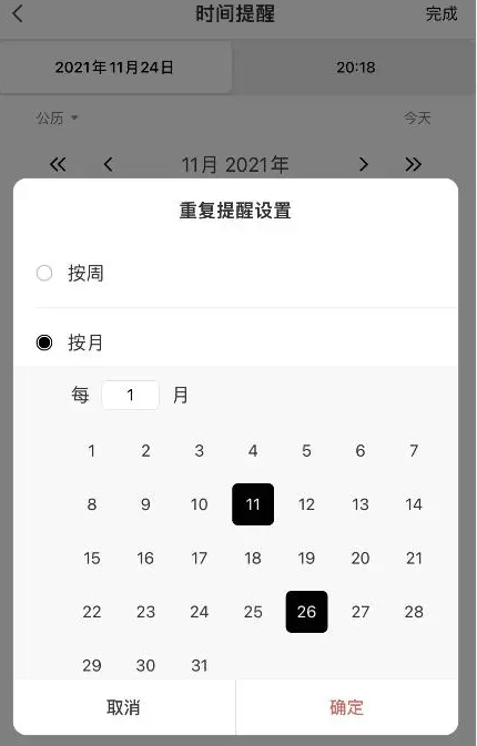 5、設置手機便簽提醒時間,選擇一個指定的提醒日期和時間,手機便簽正確設置重復提醒,可設置按天、周、月、季、年循環重復提醒。