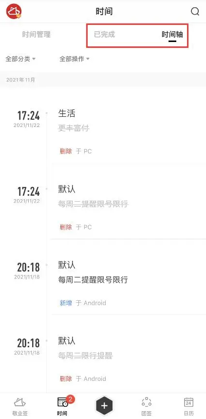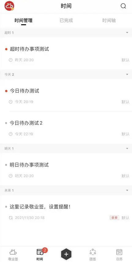 8、在時間管理內可以查看到已超時、今天、明天、未來設置的定時提醒待辦事項,讓你提前準備。