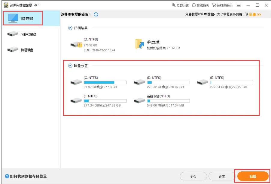 軟件版本:迷你兔數據恢復軟件v9.1
