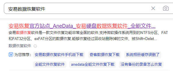 1、我們可以直接在電腦瀏覽器上查找并搜索“安易數據恢復軟件”,找到官方的地址進入。