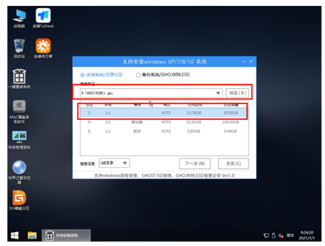 3、啟動程序后,首先選擇我們的Windows7的ISO鏡像文件,也可以選擇ISO中的win7.gho,之后選擇系統安裝的盤符,一般安裝在系統C盤中。