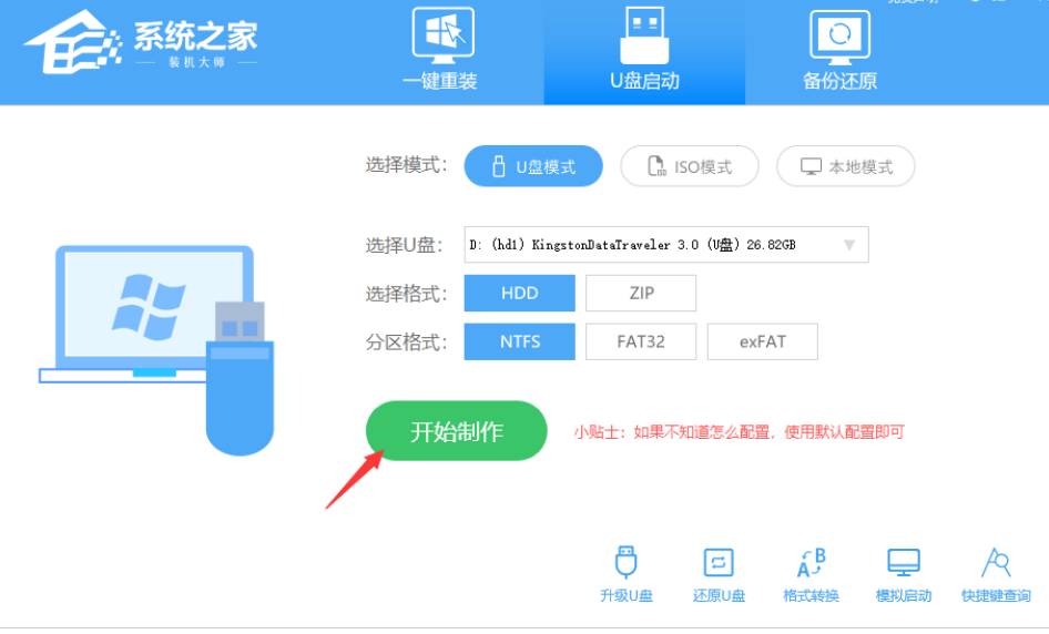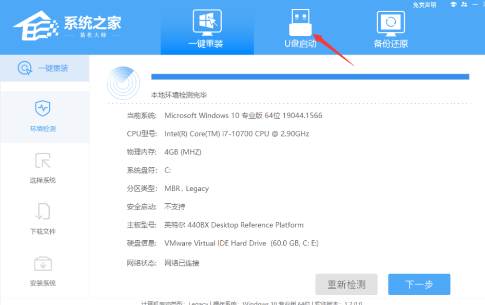 打開運行系統之家裝機大師軟件,進入U盤啟動盤制作界面;