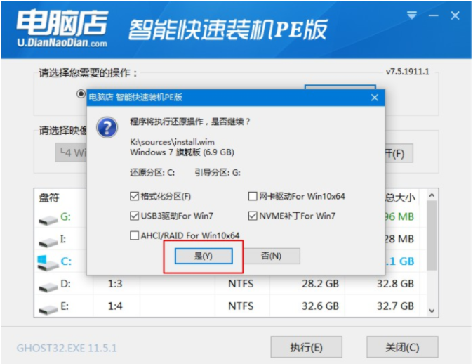11. 彈出一鍵還原窗口后,建議默認勾選,選擇“是”。