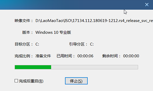 5、進入重啟階段,拔出U盤,重啟電腦自動進入系統部署。