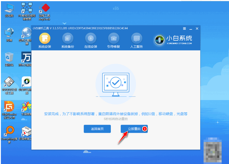 3、系統安裝完成后,我們選擇“立即重啟”選項。