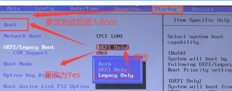 4.切換進入Startup界面后修改相應代碼(如圖所示),最后選中Boot項進入界面。