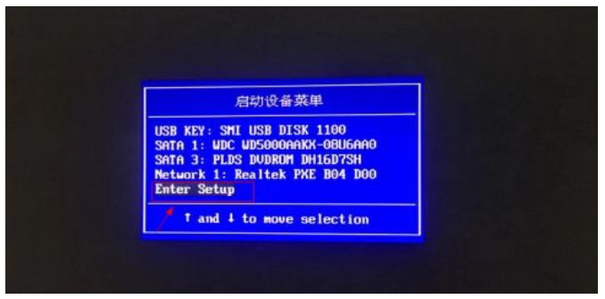 2.在啟動設備菜單窗口中,選擇“ENTER Setup”進行BIOS設置。