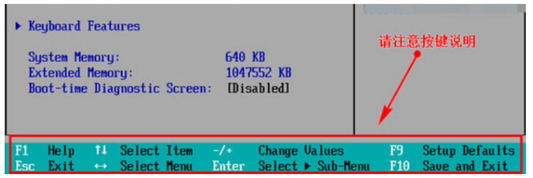1.進入bios界面設置,記住底部快捷鍵操作。