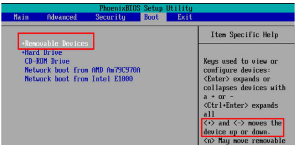 3.將“removeble device”移動至最上面,按“+鍵”實現向上移動。