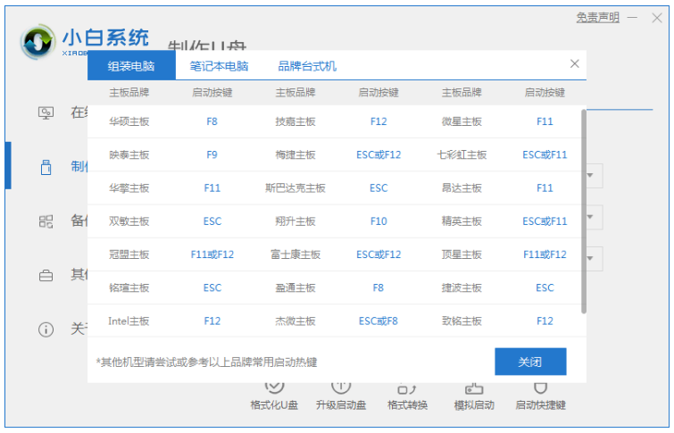 3、裝機軟件制作u盤啟動盤成功之后,快速預覽需要安裝的電腦主板的啟動熱鍵,再拔掉u盤退出。