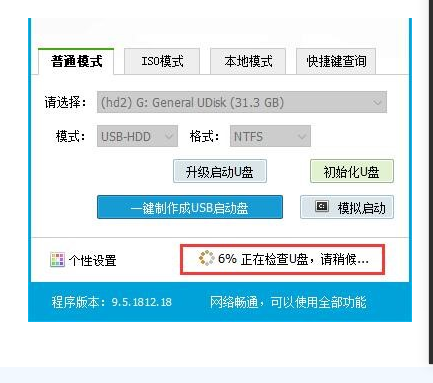 3.選擇普通模式選項卡,“請選擇”中選擇自身U盤設備名稱(一般會自動識別)。模式選擇USB—HDD,格式選擇“NTFS”。