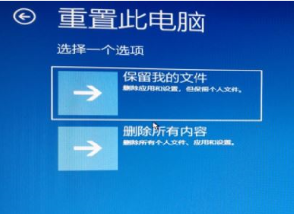 5、如果我們電腦里面沒有重要的資料,我推薦大家先選擇“刪除所有內容”再重置此電腦,如果有一些重要文件的就選擇第一項“保留我的文件”。