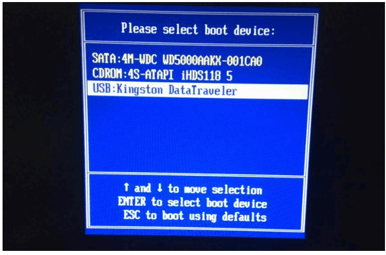 4.重新啟動電腦時,需要快速不斷按下快捷鍵,在調出的界面選擇USB選項。