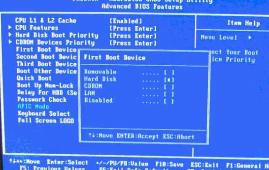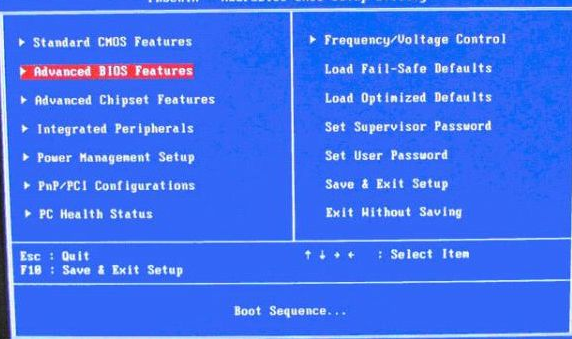 1.開機時我們快速按Del鍵進入該BIOS設置界面,選擇高級BIOS設置Advanced BIOS Features。