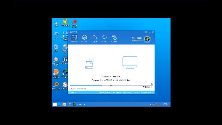 7、進入pe系統后,小白裝機工具會自動啟動系統的安裝,耐心等待安裝。