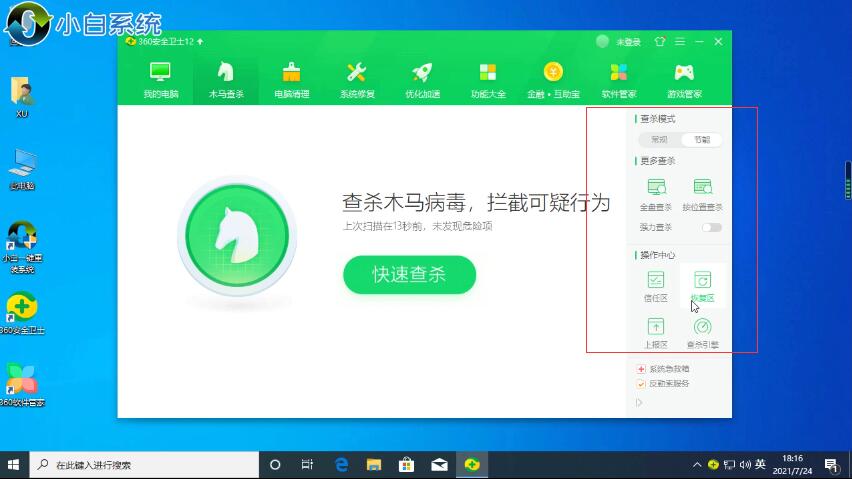 2、下載并打開360安全衛士后,選擇木馬查殺模塊==》快速查殺;