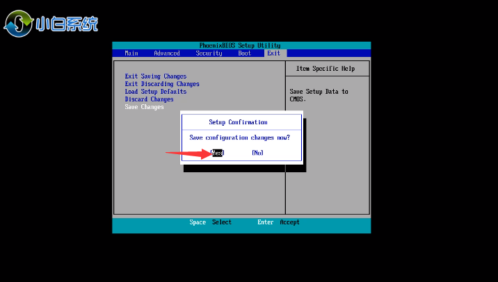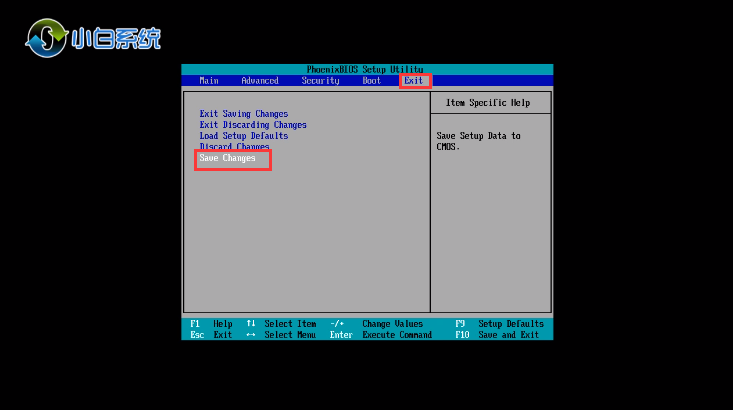 5.選擇完成后,我們方向鍵向右選擇”exit"往下選擇'save chamges"保存設置。