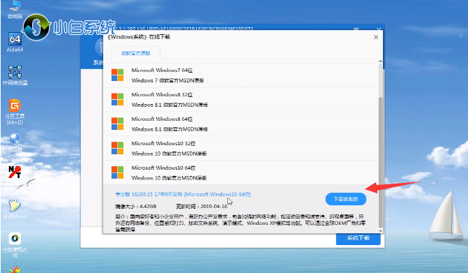 9.然后我們打開小白裝機工具,點擊在線重裝,點擊需要安裝的系統,點擊”下載該系統“。
