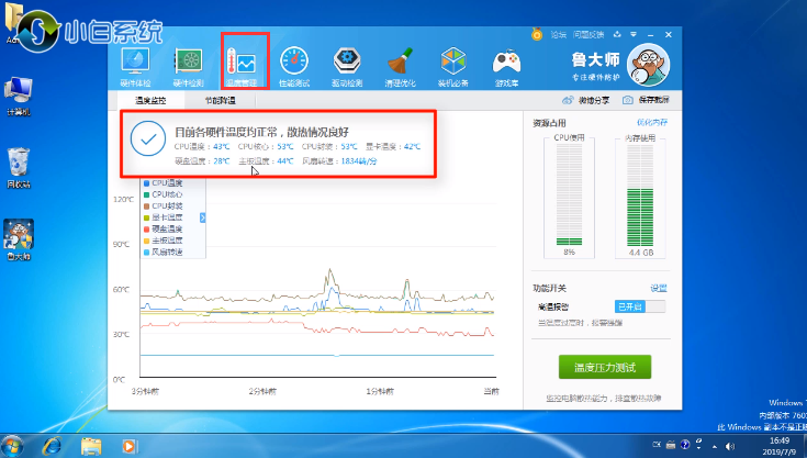 2.進入頁面后,我們可以在右側上方看見當前cpu的溫度信息。