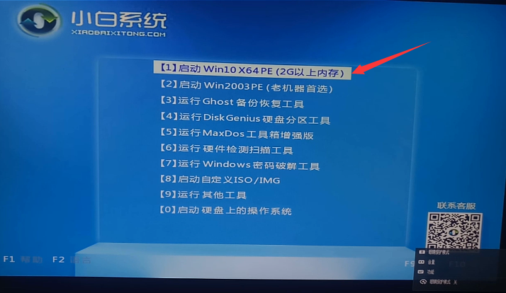 6.開始進入到pe系統中,方向鍵選擇“1”進入系統中。