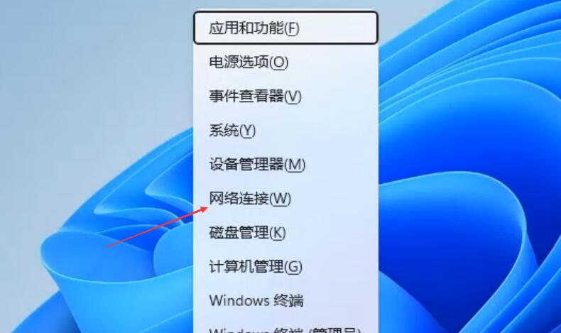 1、鍵盤同時按下“win+X”,打開快捷菜單后,找到網絡連接并打開;