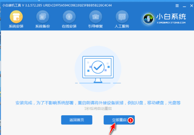 4、軟件會自動部署還原,當提示部署完成后,單擊立即重啟。