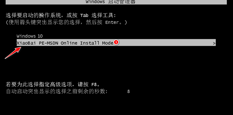 7、電腦重啟之后,在windows啟動管理頁面選擇帶有光標的選項進入。