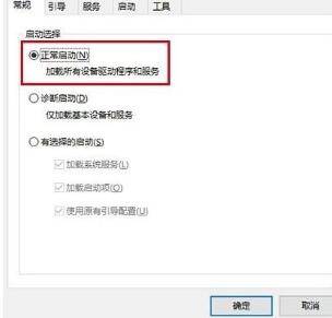 2、“常規”選項卡,點擊選擇“正常啟動”點擊“確定”按鈕。