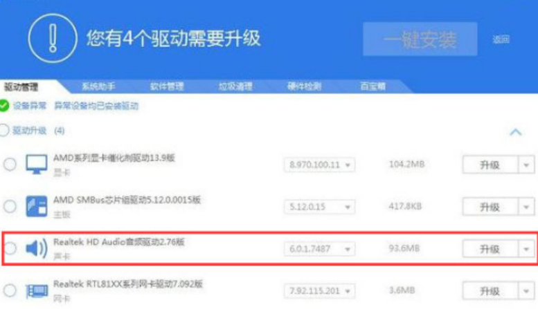 2.此時我們檢測完成后,會顯示設備需要安裝的聲卡驅動,接著我們點擊安裝聲卡驅動,等待修復完成即可修復沒聲音的情況。