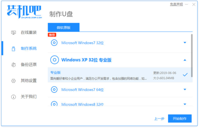 2、然后就可以選擇需要安裝的系統,點擊開始制作啟動盤。