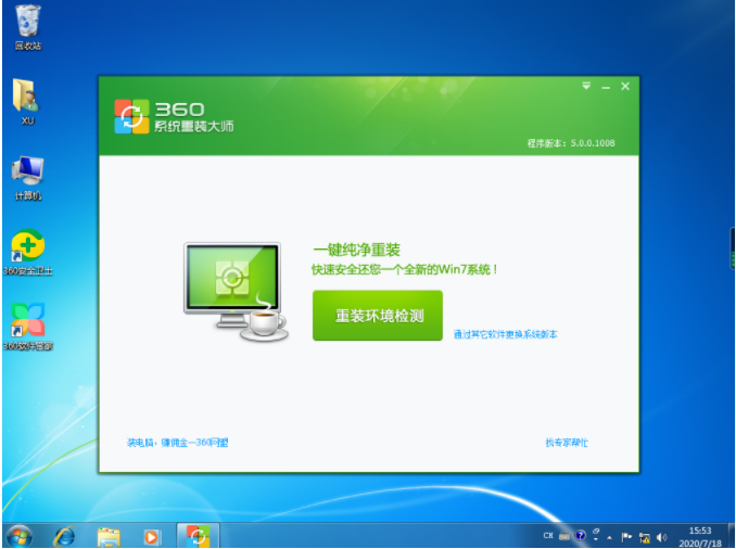 先自行下載安裝好360重裝系統大師工具,或者在360安全衛士中打開該工具;