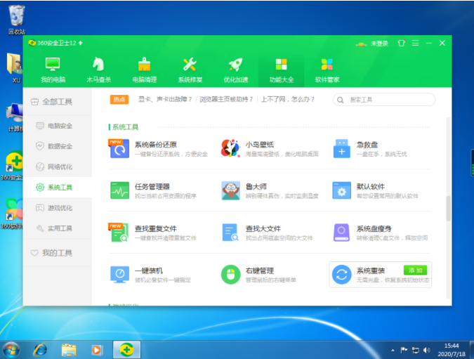 2、在功能大全中找到系統工具,在系統工具中就可以直接找到360系統重裝工具,添加即可打開使用。