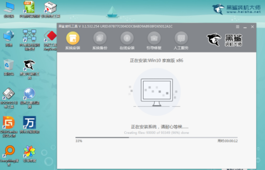在window啟動管理器界面選擇HeiSha PE進入系統,然后等待安裝;