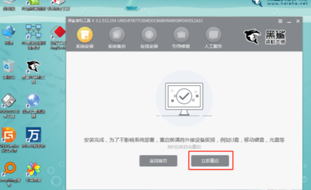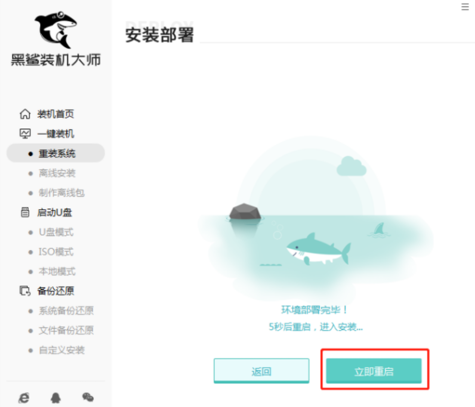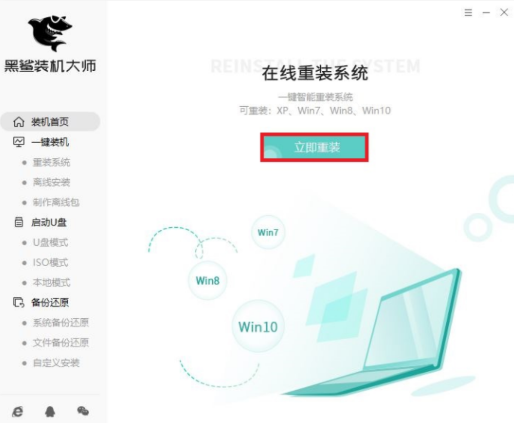 下載安裝黑鯊裝機大師,點擊“立即重裝”;