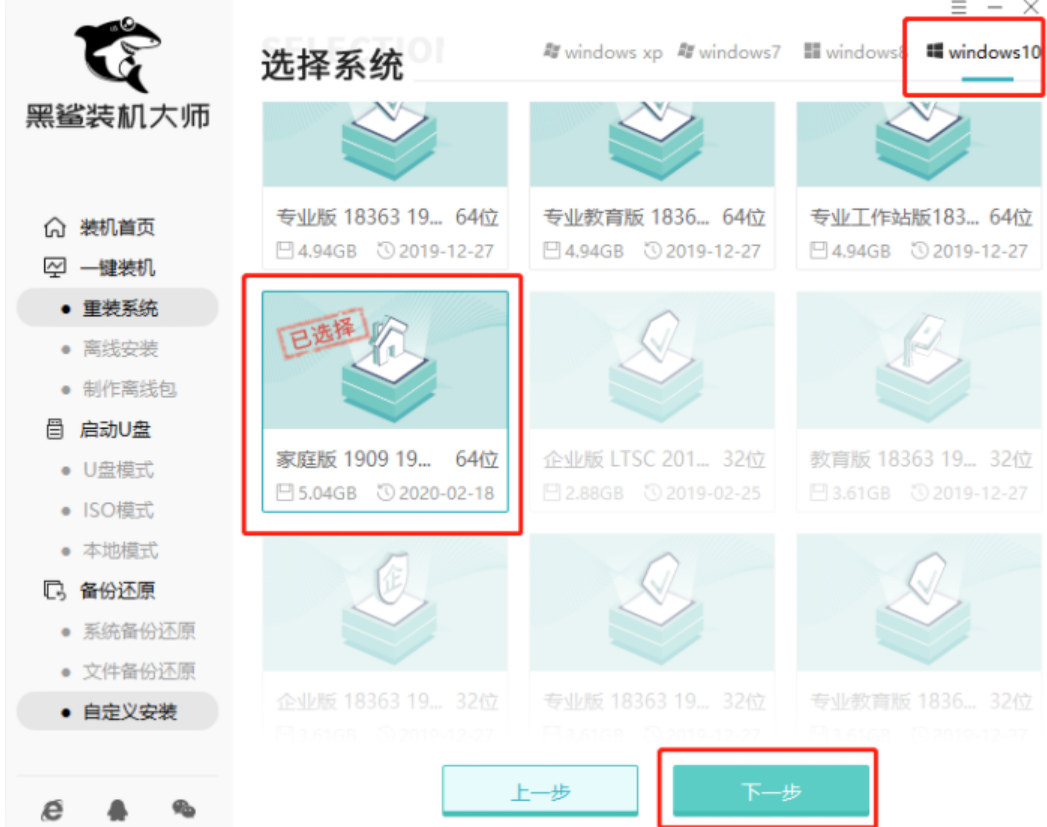 2、在選擇系統的界面,選擇合適的windows10版本。