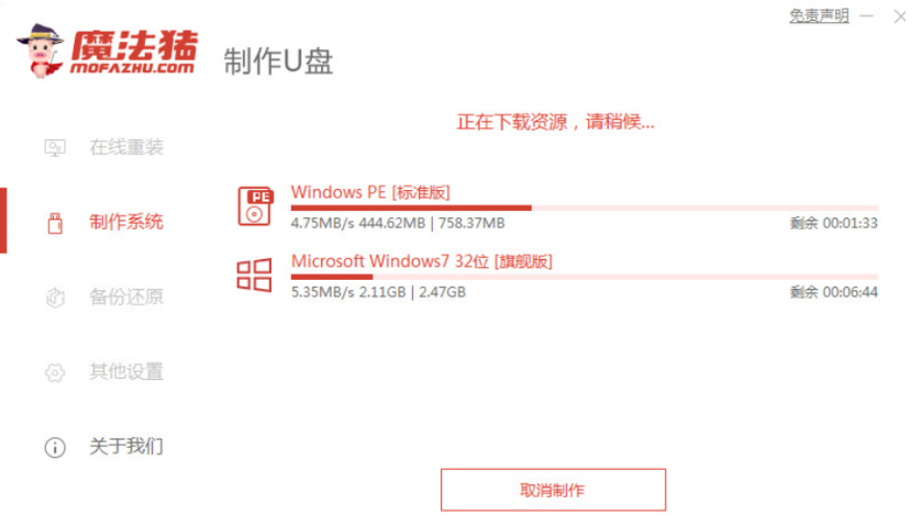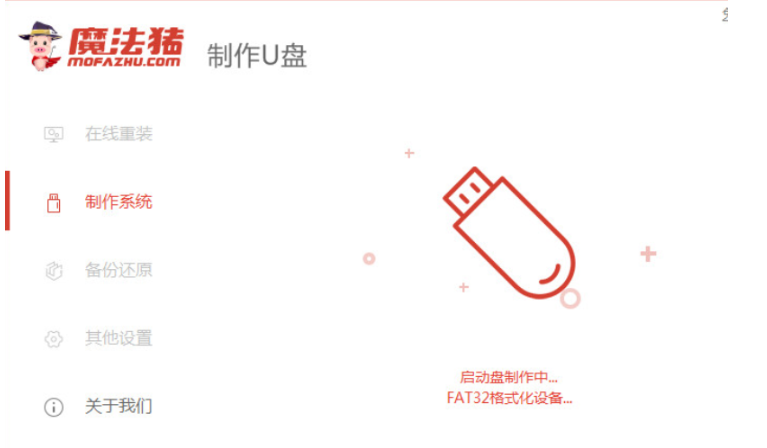1.電腦黑屏怎么重裝系統,首先電腦上下載安裝魔法豬在線系統重裝大師工具,插入U盤并選擇重裝系統模式制作。