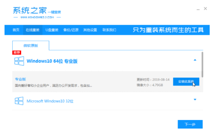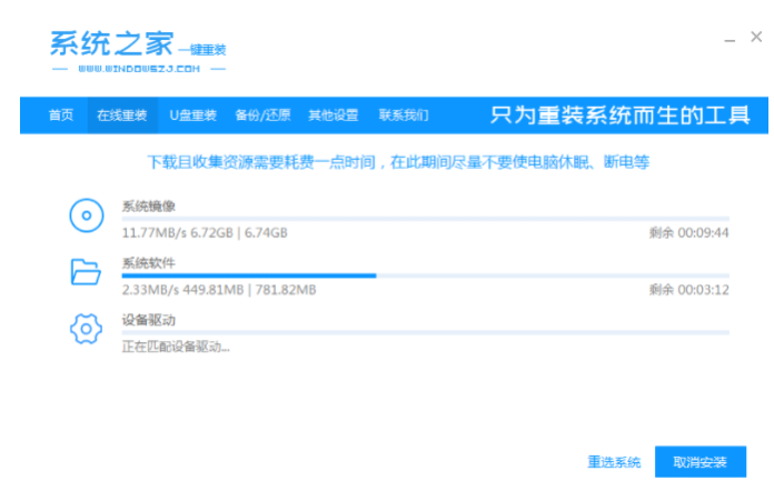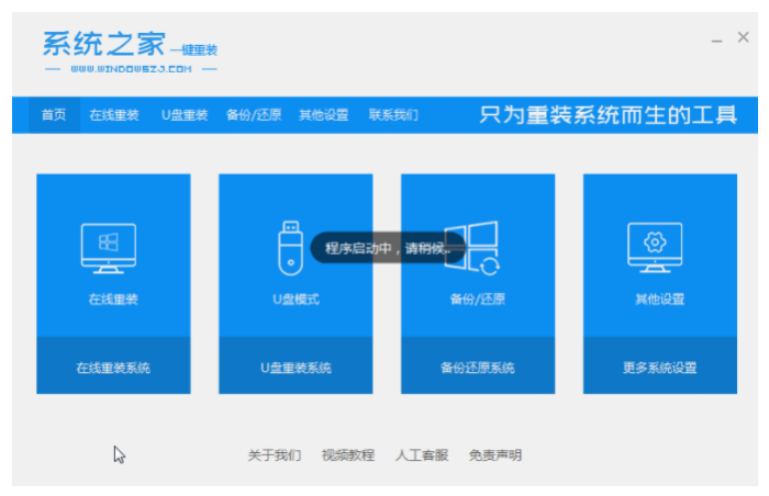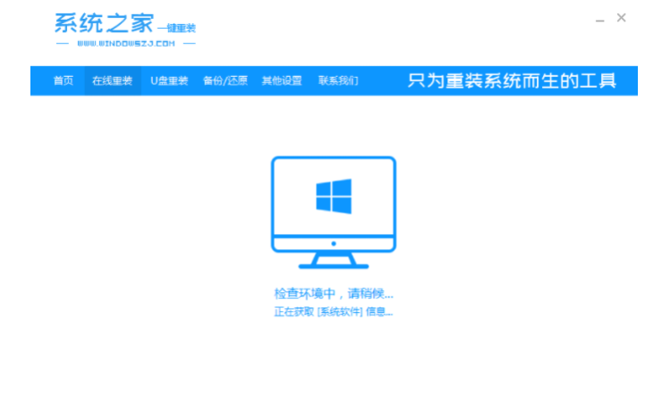 1、下載并安裝系統之家軟件,安裝完成后打開軟件,在主界面中選擇“在線重新安裝系統”。