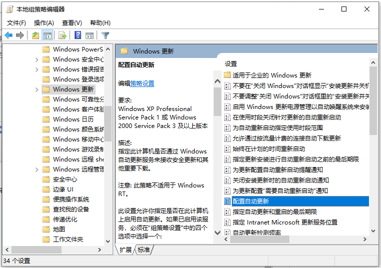 2、然后依次展開【計算機配置 - 管理模板 - Windows 組件 - Windows 更新】,在右側找到【配置自動更新】選項雙擊進入。