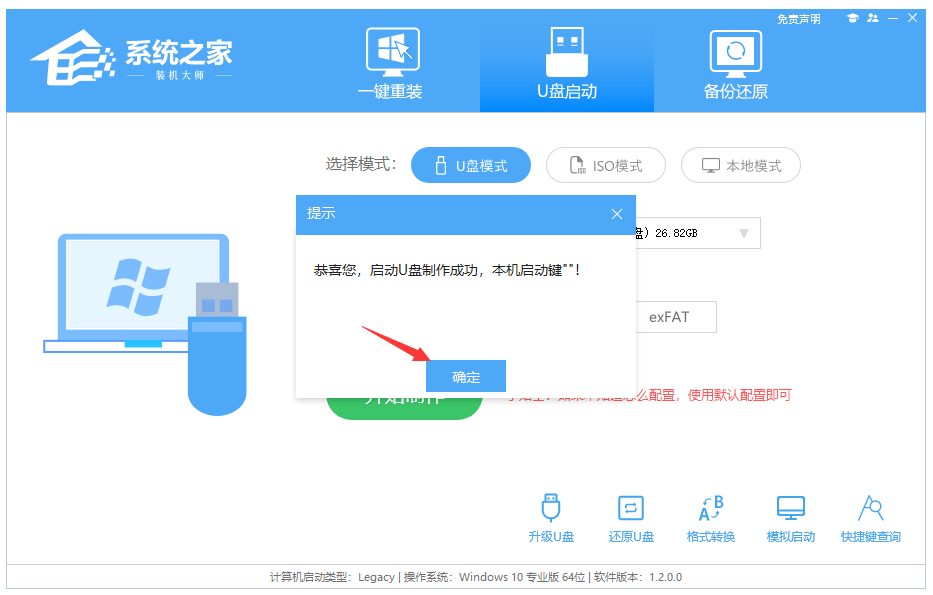 6、U盤制作完畢后,工具會進行提示并顯示當前電腦的開機U盤啟動快捷鍵。