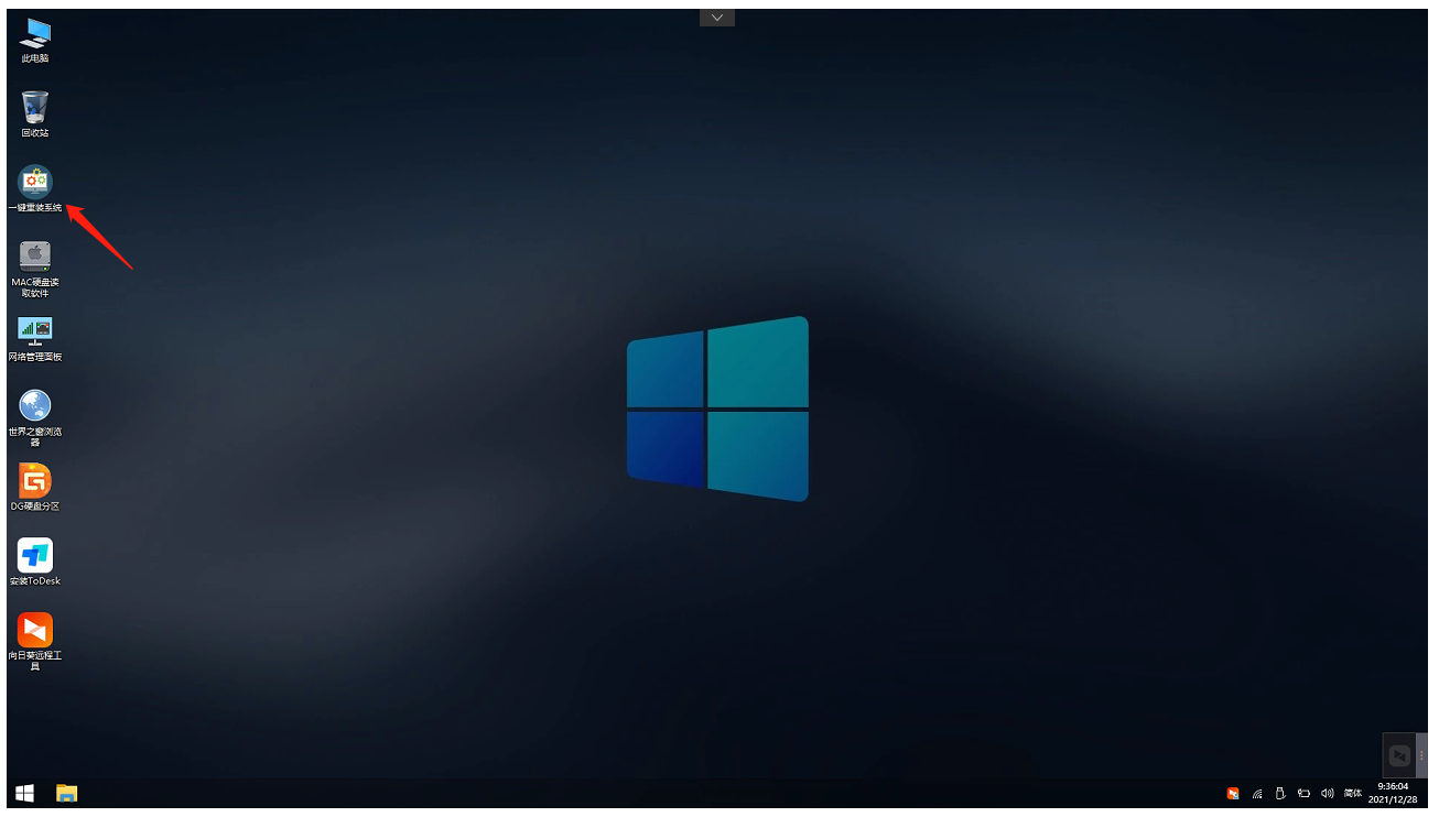 3、進入PE界面后,點擊桌面的一鍵重裝系統。